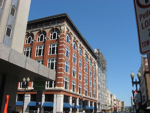 Originally constructed of brick and terra cotta in 1905, the Miller's Building was a longtime downtown retail landmark. Following the sale of the property in 1972, an out-of-state developer proceeded to “modernize” the intricate historic façade by shearing off any projecting terra cotta shapes that were in the way of the placement of a new exterior steel framing system that was then covered in black reflective glass.
